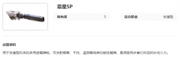 《艾塔纪元》霜星SP图鉴介绍,用于支援型机体的多用途榴弹枪,可发射烟幕、干扰、遥测等各类功能性榴弹的武器,下面小编给大家带来艾塔纪元霜星SP图鉴介绍,有需要的小伙伴一起来看看吧。