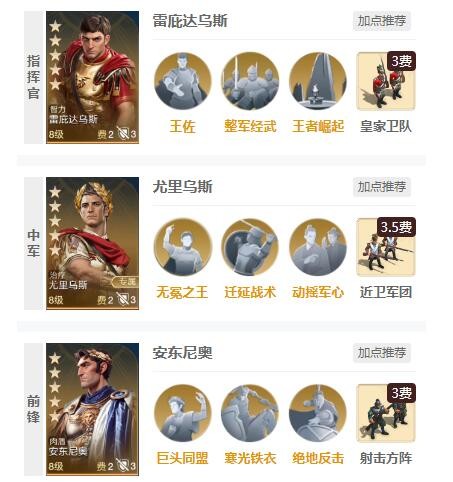 1、阵容一:安东尼奥+尤里乌斯+雷庇达乌斯