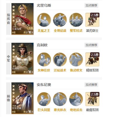 2、阵容二:安东尼奥+克里欧+尤里乌斯