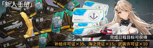 完成日程目标可获得补给许可证×35、海之凭证×15、武装许可证×10