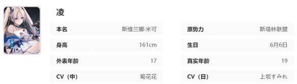 凌出生在斯塔林联盟的米可家族,父母给她起 名为「斯维兰娜」,与她一同降生的还有她的双胞胎姐姐斯维金娜·米可。
