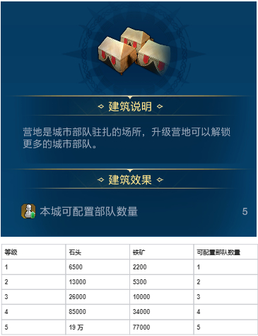 建筑营地可以为我们解锁更多的城市部队,不过解锁条件是你需要更多的住房才行