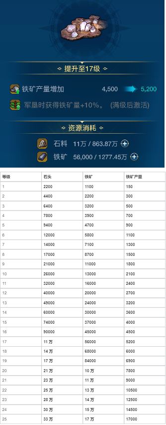 建造铁矿可以让产量增加,还有军垦时的铁矿产量也能得到提升