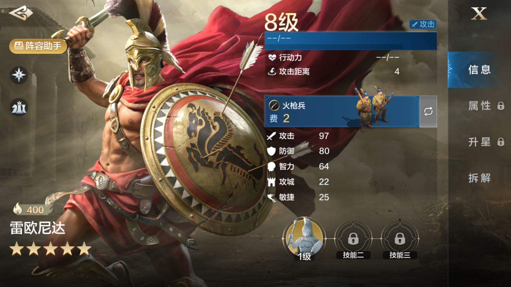 综上,如果有箭雨流星和花郎武道、风暴之箭、木马奇袭中的其中一张,雷欧尼达可以作为单核输出,和名存实亡的签到队进行搭配。如果刚好上面那几个技能都没有,且玩签到队差伤害,那么雷欧尼达或许可以拆了。