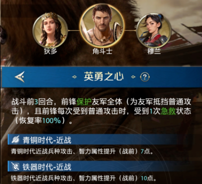 首先队伍羁绊英勇之心将前锋的伤害吸收能力拉满,并且给予持续恢复。而角斗士本身的技能和狄多的技能更加强化了角斗士为核心的承伤体系。这就是最典型的“吸伤黑洞流”。包括大征战者和尤里乌斯的无冕之王附带全体愈合,也是这个套路,依靠全体高额恢复抵消伤害。这个组合是前期最难打的组合,是虐菜永动机。二签到大军事家队菜刀追击流