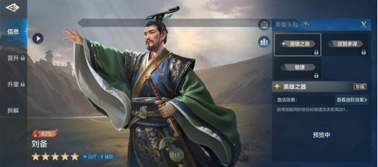 技能搭配上,刘备比较自由,既可以带控制技能,也可以带辅助或治疗,如“动摇军心”“全境征战”“制敌机先”都是不错的选择,主要是为队伍提供更多功能性。