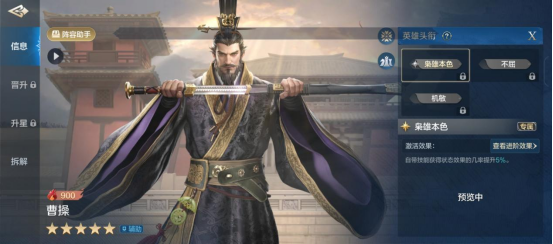 《世界启元》中,曹操是一个非常强力的辅助英雄,定位也很奇特,不是让队友打出更高伤害,而是保护队友让队友输出更稳定,因此非常值得培养。