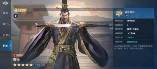 两个四星与曹操搭配的命运羁绊,提升防御与智力面板的效果只能说还行,搭配优先度不高。