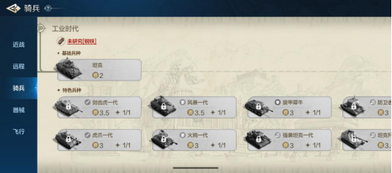 远程兵种解锁有两个前提,一个是掌握关键核心科技,一个是解锁对应特殊战略资源。
