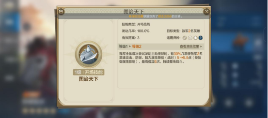 但其自带技能“图治天下”却非常给力,效果为: