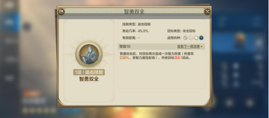 其自带技能“智勇双全”效果为: