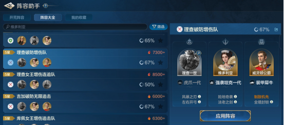 搭配方面,作为追击输出技能,最优选择是追击体系的输出英雄,如查理、维多利亚、萨拉丁等等。当然,也可以给其他攻击输出英雄使用,但因为“溃败”效果不好触发,相对效果会差一点。