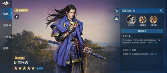 下面,对还不熟悉明智光秀的小伙伴,就来看看他的技能与搭配介绍吧。