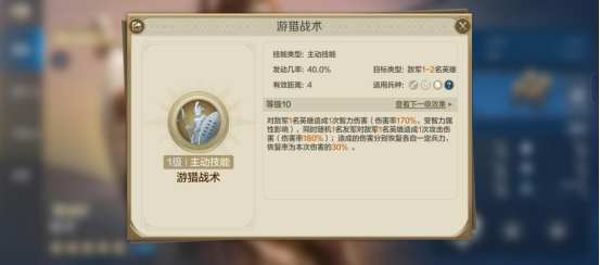 其自带技能为“游猎战术”,满级效果为:
