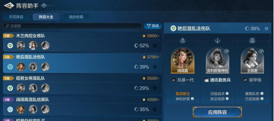 女性输出英雄上,若玩智力推荐阔阔真,攻击则推荐用木兰。辅助搭配比较自由,比较推荐艳后与女性契合度很高,专属头衔后减伤能力非常给力。此外,西施、贞德也都是不错的选择。