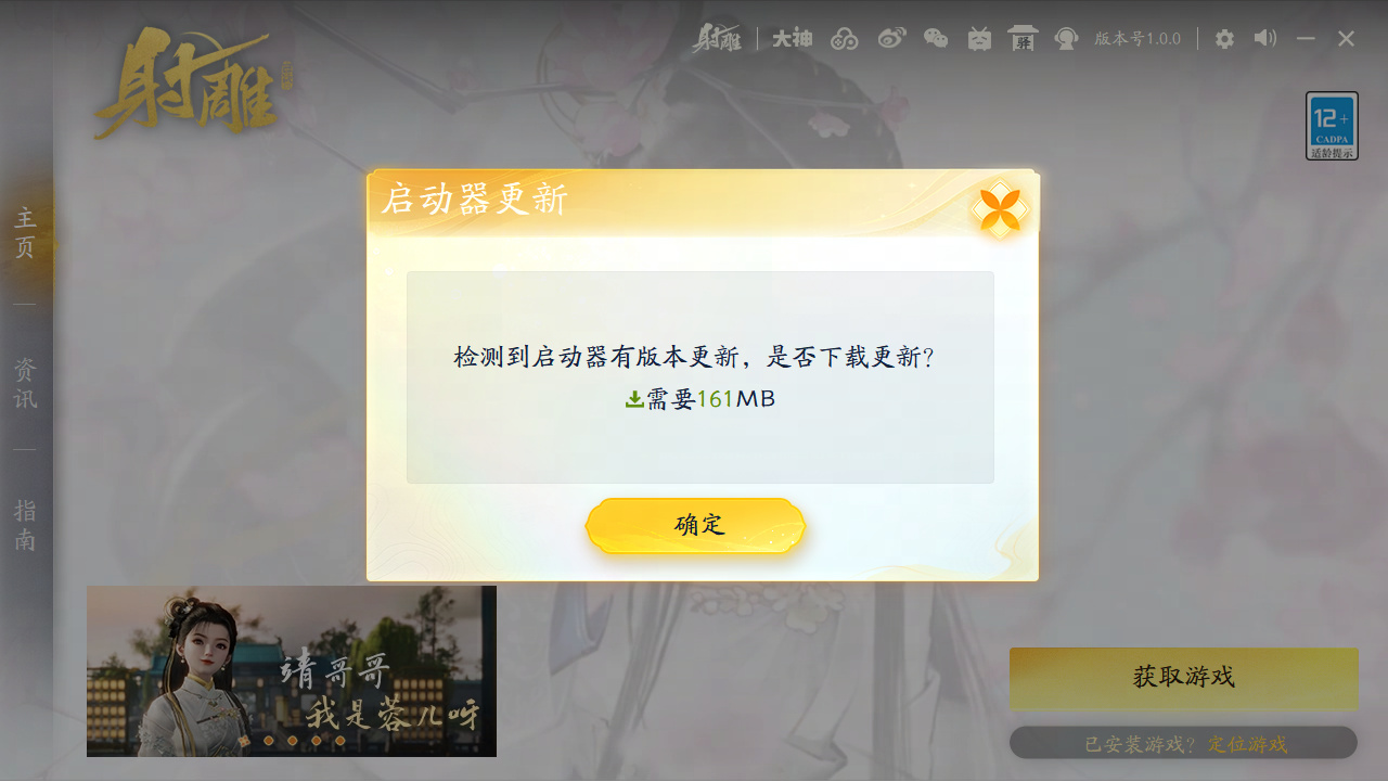 第一步:复制下方链接前往下载射雕官方专属下载器(启动器):https://wuxia.163.com/download/