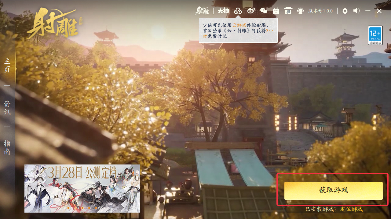✦如未在App Store进行预订:点击官网首页App Store下载按钮或在App Store搜索射雕,点击获取按钮即可下载官方客户端。