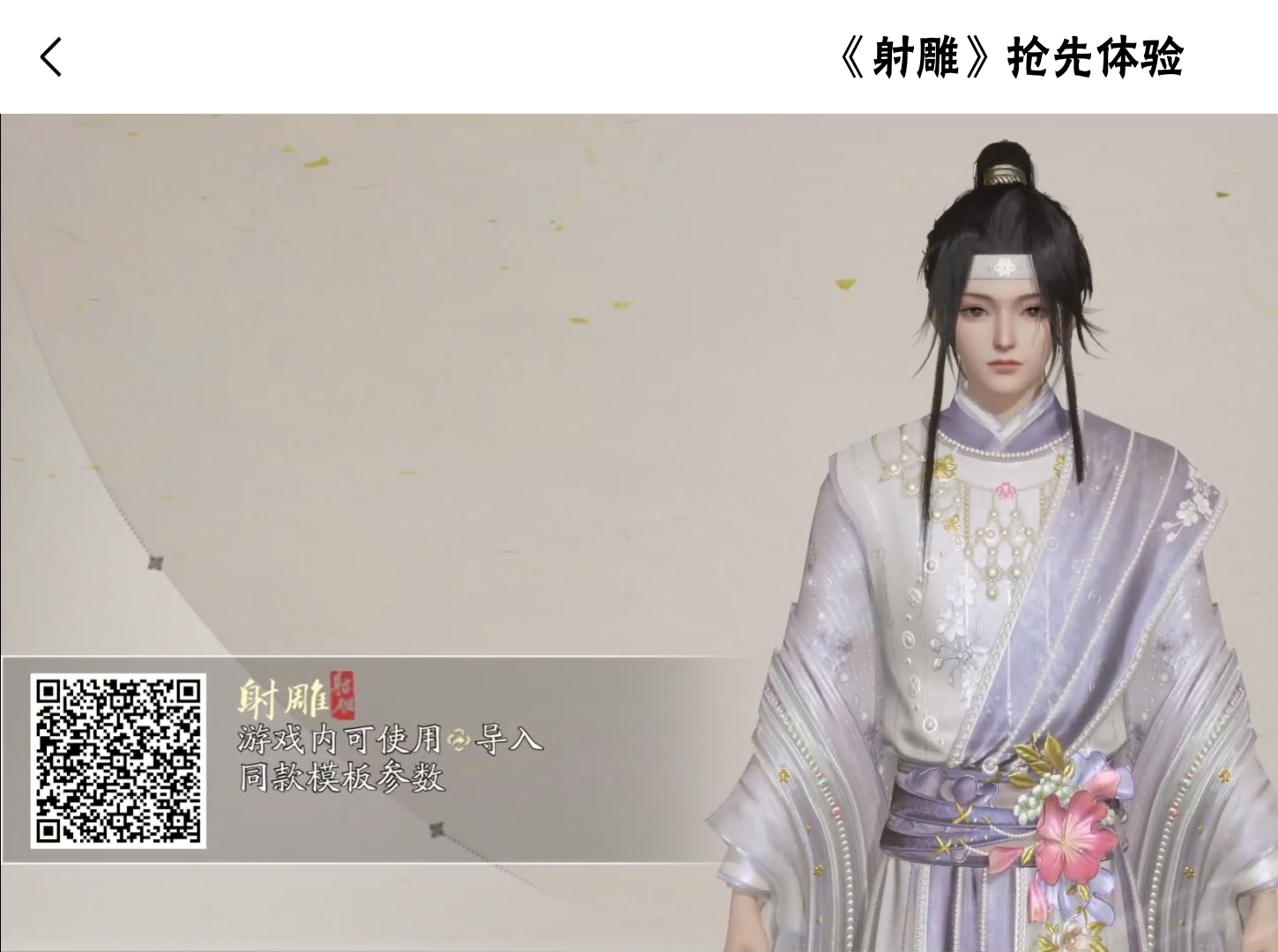 《射雕》3月28日全平台公测,让MMO真正自由!拥有明河社正版授权,跨越150年的江湖变迁,亲临南宋绚丽多彩的人文风情。进入游戏大家需要先开始捏脸,接下来给大家带来了射雕捏脸二维码大全,射雕捏脸数据图分享,大家有喜欢的图可以直接导入数据!