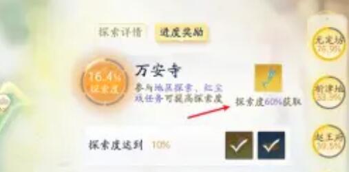 2、每张地图探索到60%都能够获得一枚玉钥。