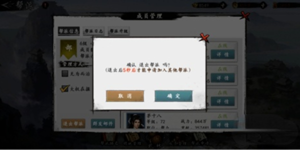 第四步:玩家退出帮派后,角色需要等待一段时间才能申请加入其它帮派。