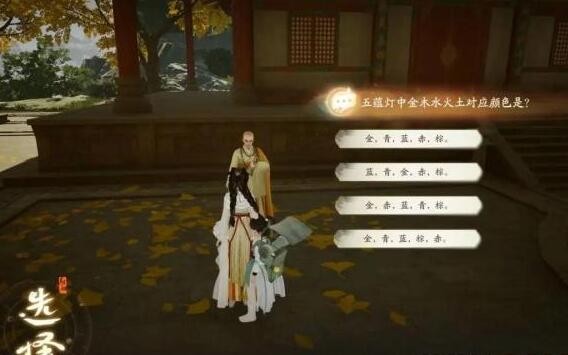 五蕴商灯各有颜色,似乎与五色五行互相对应,回答净初师父的谜题吧。