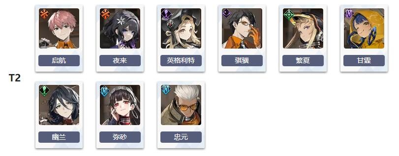 T2:启航、夜来、英格利特、骐骥、繁夏、甘霖、幽兰、弥砂、忠元