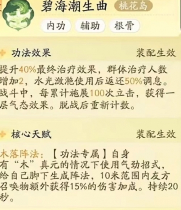 1、提升40%最终治疗效果,群体治疗人数增加2,水光潋滟使用后返还50%调息。