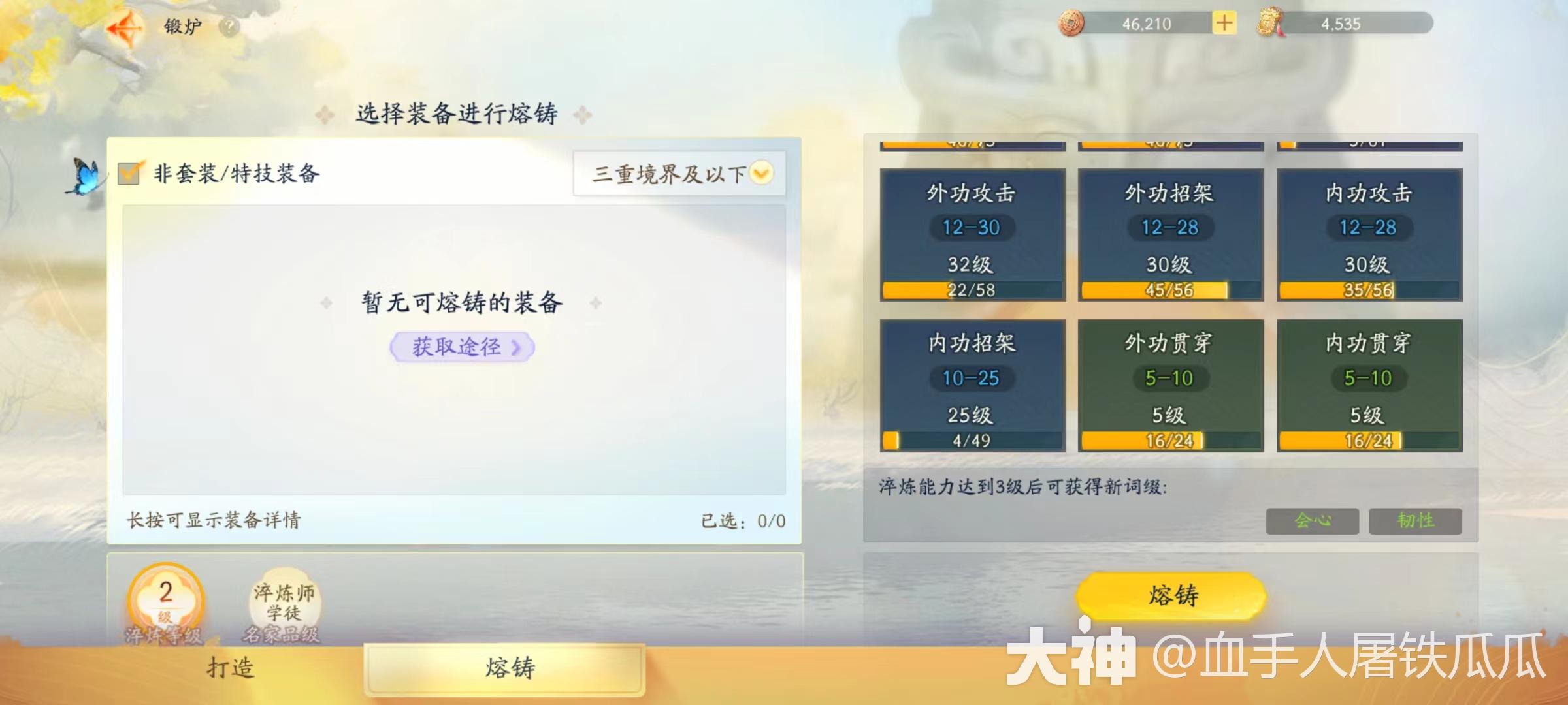 淬炼能力等级提升了才能升级淬炼师等级