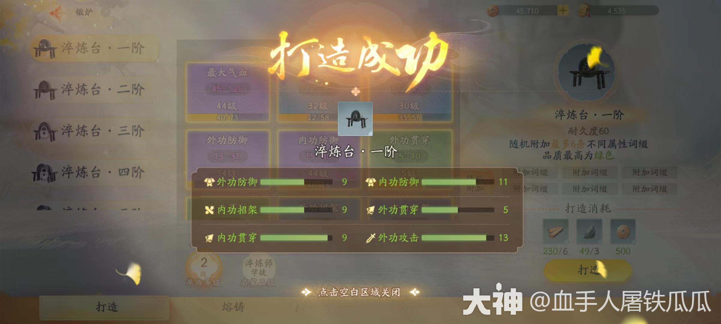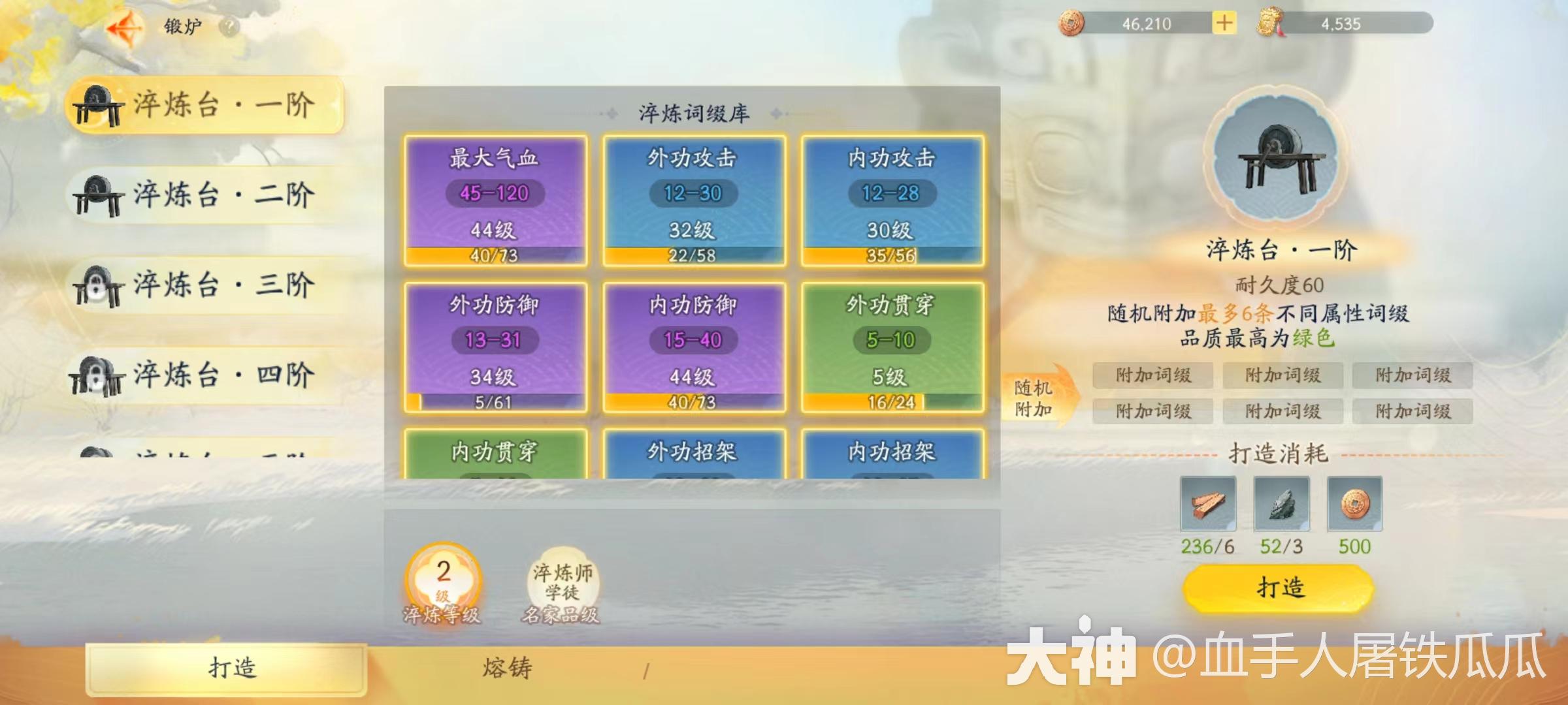 有了【锻炉】就能开始淬炼了,下面分三块讲