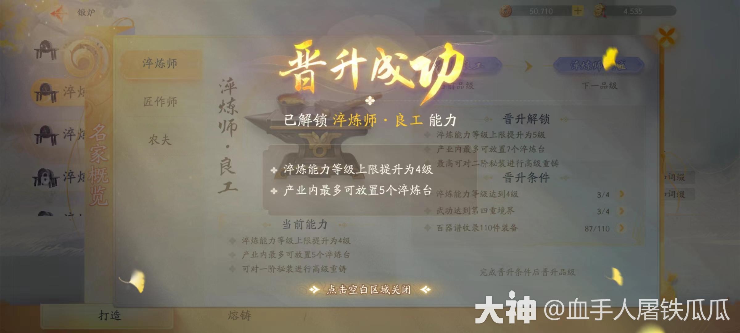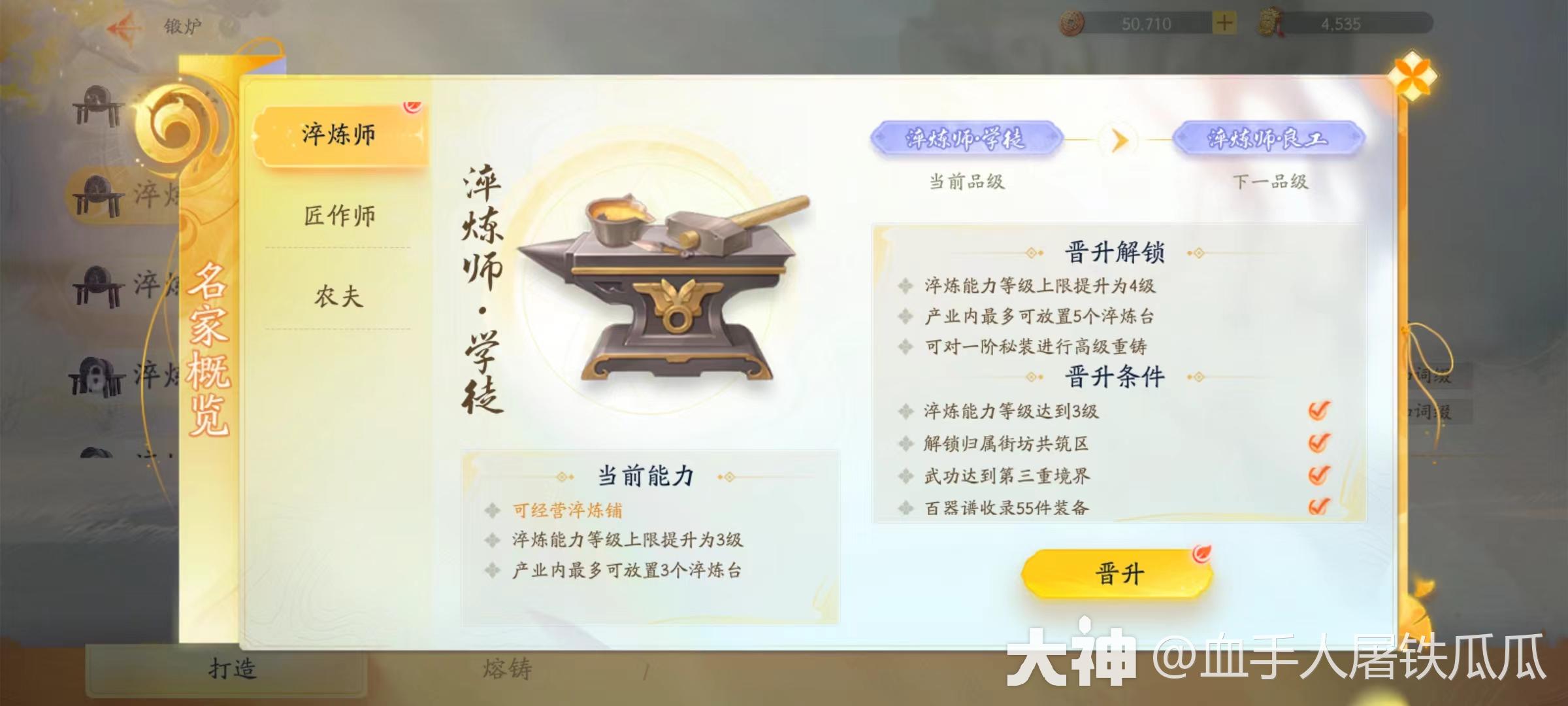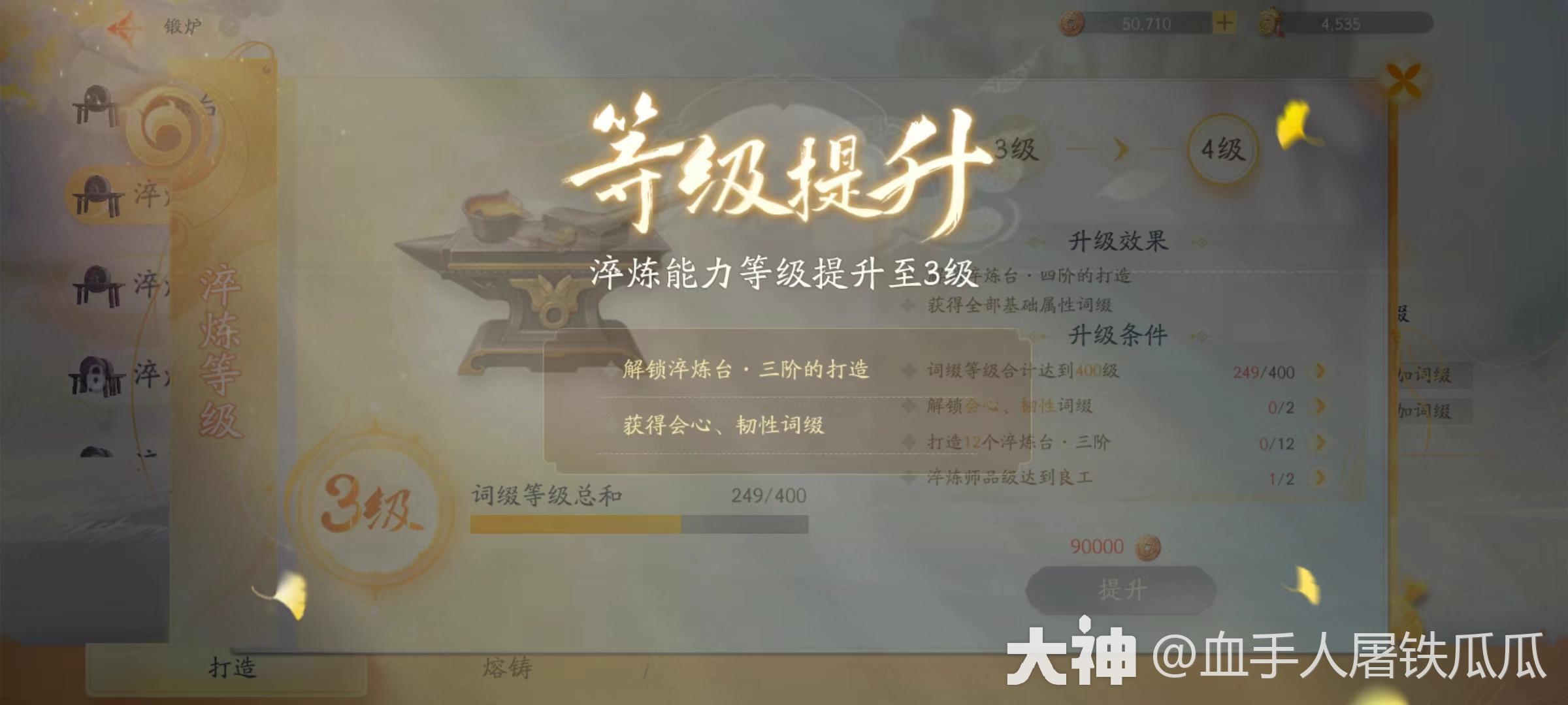 淬炼师等级提升