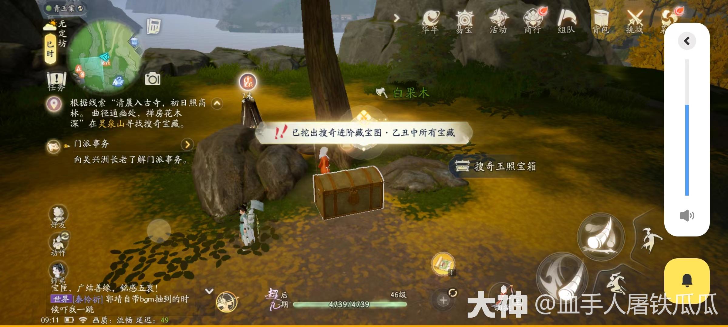 藏宝图在剑侍旁边的树下,直接追踪剑侍就能找到