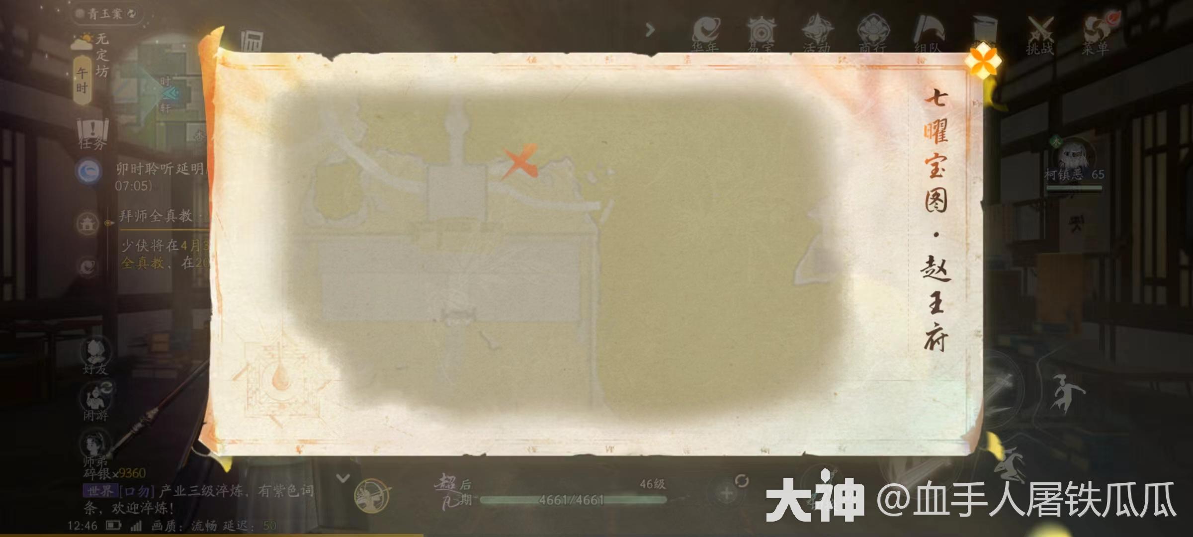 王府大门找到赵王府事物商店仲衡,从这个位置就能看到藏宝图的光标。