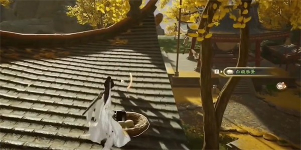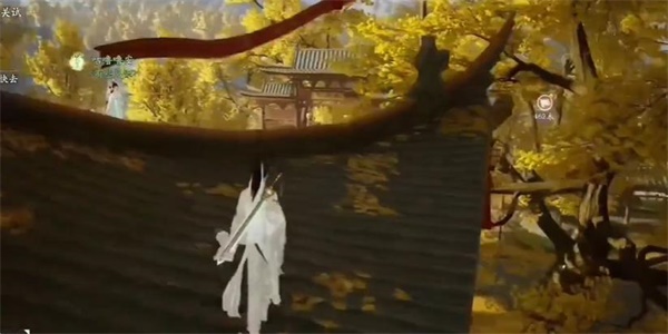 2、接着我们就需要上到屋顶上,往左手边的位置前行。