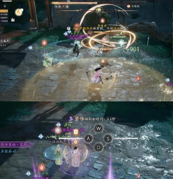 随机选择一名玩家,一个旋风转过去,被锁定的玩家就必须要用鼠标来解除控制,这样才能摆脱彭连虎的旋风范围或者奶妈净化解控,需要躲开避这个技能的话,不然就会挂掉,但是肉开减伤是可以抗的。
