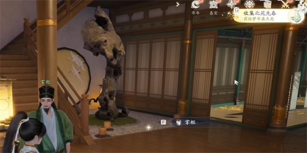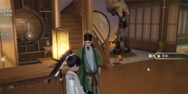 2、接着我们完成第一章主线任务之后,就和这个掌柜进行对话。