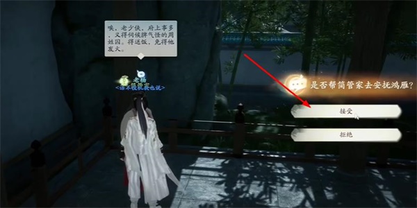 2、接着我们就和这个管家进行对话,选择帮助他即可。