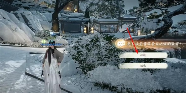 2、接着我们就和管家进行对话,选择接收就可以领取到这个任务。
