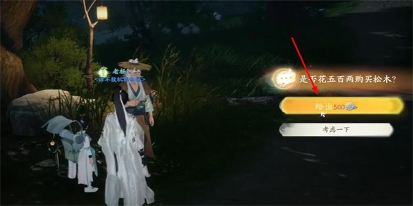 2、接着我们就使用500两来购买到松木。