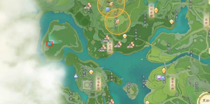 剑飞不期子十的具体位置在黑松林左下角小岛上