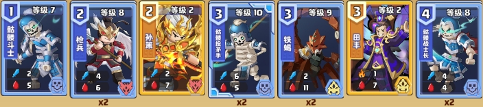 铁蝎+枪兵+骷髅斗士+骷髅投矛手+骷髅战士长+曹操+许褚+司马懿+刘备绝对可以打爆一切困难本。剩下的卡根据副本和个人的卡牌情况调整一下就好了。