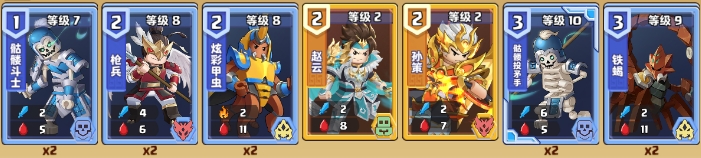 铁蝎+枪兵+骷髅斗士+骷髅投矛手+骷髅战士长+曹操+许褚+司马懿+刘备绝对可以打爆一切困难本。剩下的卡根据副本和个人的卡牌情况调整一下就好了。
