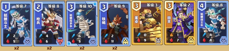 骷髅战士长:合适的位置上阵此卡有意想不到的收货,推荐8级使用。