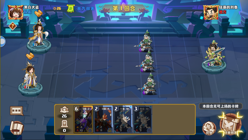 选择阻挡的道路一定要有规划,控制自己和队友的血量平均下降。不要让其中任意一方的血量过低,否则就算熬过了开局,8-9回合的黄盖+寒冰法师,以及随时都有可能登场的周瑜会直接结束这场战斗。
