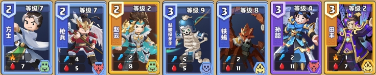 紫卡(7级):霍骏(开局必有一个,后续战斗也会随机登场),高沛,刘璋,张允,雷铜,蔡夫人