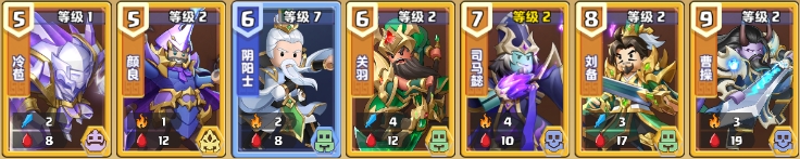 3. 前5回合一定要有较强的输出卡清场,否则基本可以重开,关羽,田丰,司马懿,吴兰,至少要有其一。