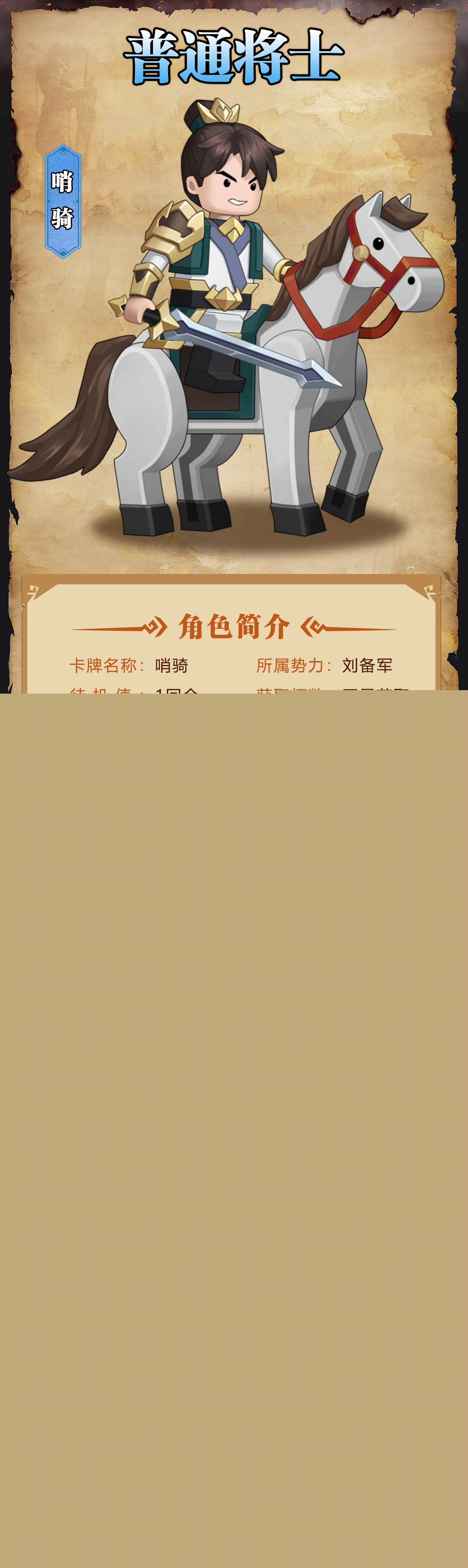 我是小奇兵游戏中按照势力不同多个阵营,其中刘备军中卡牌哨骑怎么样呢?这是一位普通将士,初始蓝卡中较为有用的一张蓝卡!今天小编就给大家带来了《我是小奇兵》哨骑角色图鉴分享,包含该卡牌角色的属性、技能等信息,想要了解详情的可以来看看哦!