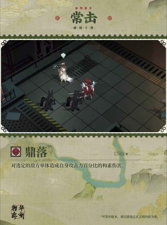 鼎落(常击):对选定的敌方单体造成自身攻击力百分比的构素伤害
