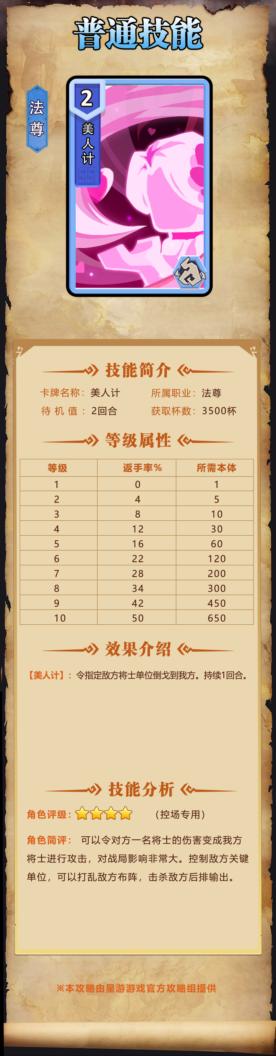 我是小奇兵采用创新的乐高积木风格打造三国武将,画面轻松休闲,剑豪、法尊、道圣、神箭四大主角转职系统,各职业技能不少,其中法尊技能美人计怎么样呢?这是一个普通技能,下面小编就给大家带来了《我是小奇兵》美人计技能图鉴,一起来了解一下吧!