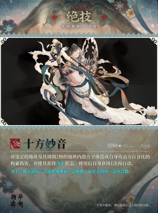 使用绝技后,自身下1次行动可移动至自身周围数格内任意单位周围1格的位置,并使自身获得经变状态。