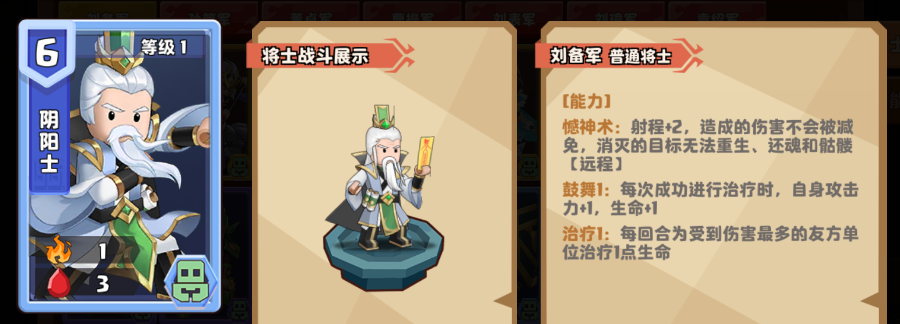 曹操军体系内的绝对大将,光环能力【死咒1-曹操军】能为场上其他友方单位获得【死咒1】:自身死亡时对场上攻击力最高的1个敌人将士造成3点伤害。这个buff能作用在骷髅与尸奴身上,让他们被击杀复活时不断触发死咒,大量消耗敌方输出的血量。养起来的阴阳师,巨大的严颜,也会被这源源不断的尸奴与骷髅的复活与死咒中击垮。